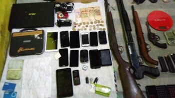 Los efectivos también secuestraron 10 armas de fuego (8 de guerra y 2 de uso civil), municiones, 4 vehículos, 148.080 pesos, 200 dólares, 20 celulares, 1 balanza.