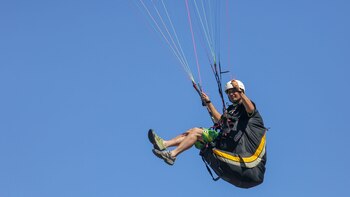 "Lo hacemos en la zona sur, es una zona muy linda con viento dinámico que pega contra el acantilado y hace como si fuera una ola, nosotros somos como surfistas volando con los parapentes", define Marcelo su mundo, para el que dice no hay edad, ni barreras más que las propias.