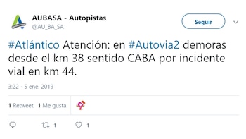 Desde AUBASA informaron que "se encuentran reducidas ambas manos por incidente vial" y que "el tránsito es desviado por calle colectora en zona de El Peligro".