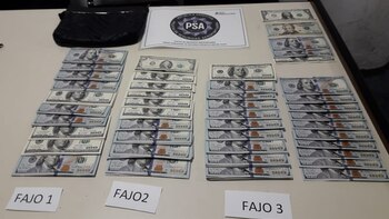 En el interior se encontraron tres fajos de dinero por un valor de 31.321 dólares y el ticket sobre una operación bancaria a nombre del presunto propietario de la suma.