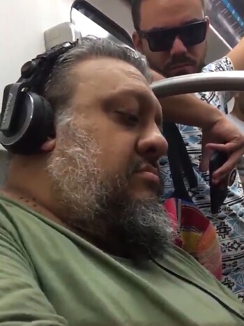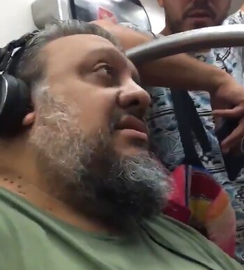 "El celular la sacó sin querer", fue la insólita respuesta del hombre, que mantuvo los auriculares puestos y pidió que no lo tocaran cuando la otra mujer lo golpeó en la frente: "¿Qué tenés en la cabeza, eh?".