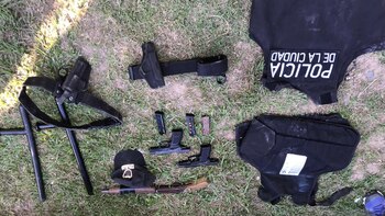 Durante el procedimiento se secuestró un revólver calibre 9 milímetros que sería el arma homicida, la pistola Bersa calibre 40 que le sustrajeron a la víctima, y una escopeta recortada calibre 12/70. También chalecos antibala de la Policía de la Ciudad, una gorra de la misma fuerza, funda de transporte, correaje y una tonfa.