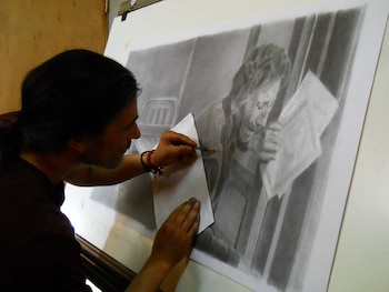 A partir de una foto y sólo con un lápiz negro que varía en dureza y espesor, Isrrael construye la forma mediante áreas de sombras. El tiempo promedio que le lleva cada dibujo es de 80 horas. "Es una semana y media considerando tiempos de sueño".