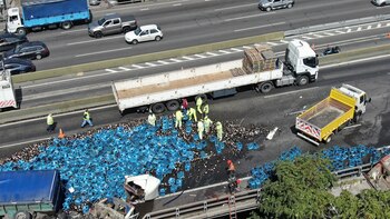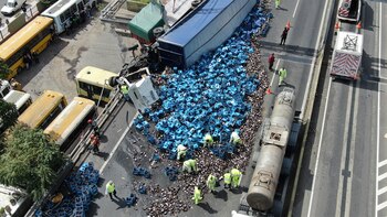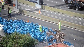 Las tareas de limpieza demandaron mucho tiempo, ya que se volcó prácticamente toda la carga de cerveza del camión y hubo un derrame de combustible sobre el asfalto.