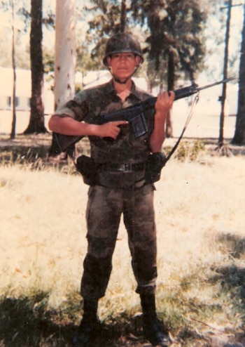 Realizó el servicio militar en el Regimiento 4 de Artillería Aerotransportada.