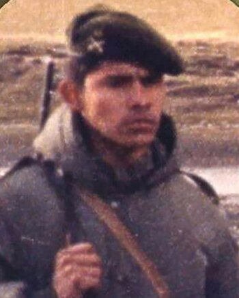 Se trata de un técnico químico que, a sus 19 años, era uno de los pocos combatientes de Malvinas que hablaba inglés. Fue destinado a Monte Longdon poco después de haber sido asignado en la Infantería de la Marina.