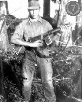 Formó parte de la Compañía C del Regimiento 7 y permaneció durante la mayor parte de su actividad en la guerra en las trincheras de Monte Longdon.