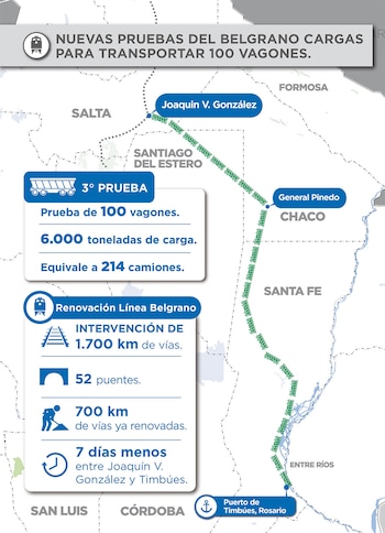 Esta prueba se suma a las últimas dos que se realizaron en octubre de 2018 con un tren de 64 vagones desde General Pinedo, en Chaco, hasta Timbúes. En octubre de 2016, en un tramo más corto, se realizó otra prueba con 100 vagones desde Pampa del Infierno hasta Avia Terai, en la provincia de Chaco.