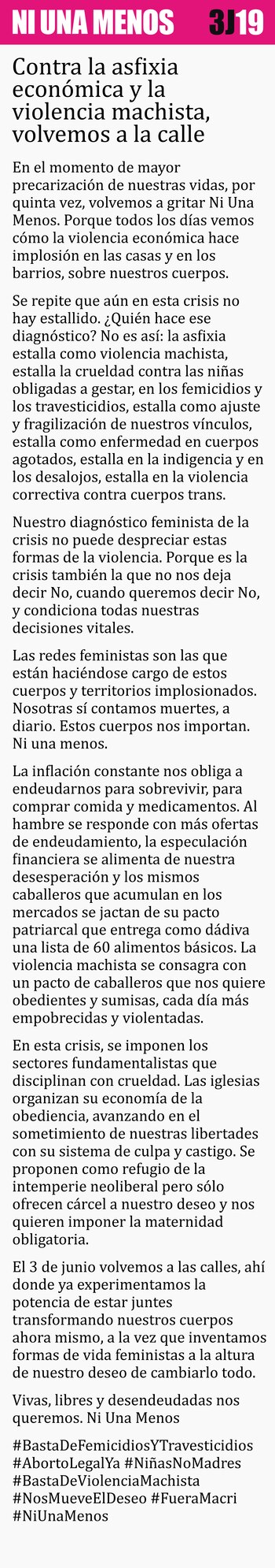 En esta cuarta edición, en un 2019 electoral, entre los pedidos que se dieron a conocer desde la organización, ya no estuvo sólo el de "Libres nos queremos", sino también "desendeudadas". Un giro a los límites de la manifestación que comenzó a a pronunciarse en otros sentidos de la actualidad del país. Aunque esa fue una de las principales críticas que recibió este lunes la marcha, al menos en redes sociales.