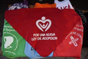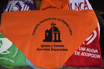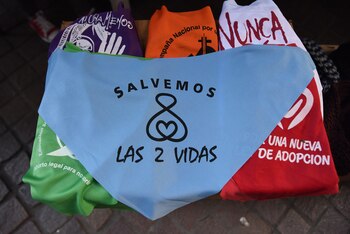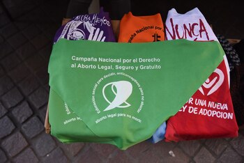"Hay 23 colores ya", le aseguró a Infobae durante la marcha del martes pasado María, dueña de un puesto de diarios devenido en polirubro de avenida de Mayo. Ella sólo tiene a la venta los cuatro que más salen: el verde de la Campaña Nacional por el Aborto Legal, Seguro y Gratuito; su antítesis, el celeste "pro vida"; el violeta de #NiUnaMenos y el naranja que pide por la separación del Estado y la Iglesia.