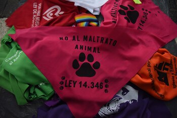 Los que los venden lo hacen en el piso, de a pie entre la gente, los cuelgan en las rejas de los kioscos. No tienen un compromiso con las causas, están para todos los bandos. No ven en el pañuelo un símbolo de estos tiempos, solamente un producto de bajo costo que hoy sale y que hay que hacer durar. Entre las reglas básicas está la no llevar puesto ninguno mientras se trabaja, porque podría significar perder un cliente.