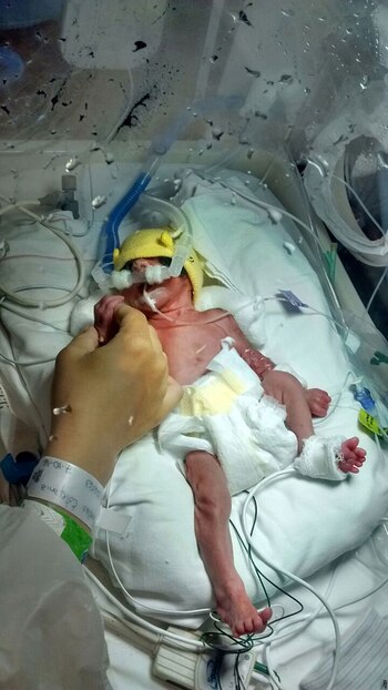 Estefanía iba por la semana 24 de gestación, su hijo pesaba 1 kilo. El plan era darle inyecciones para madurar los pulmones y esperar dos días: hacerlo nacer el viernes para que ella pudiera empezar la quimioterapia el sábado. "Yo pensé que se morían los dos, sentí que se me terminaba la vida", cuenta ahora a Infobae Ezequiel (35), el marido de Estefanía.