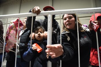 En ese espacio desplegaron colchonetas y dividieron el salón en tres partes: para los hombres, para las parejas y para las mujeres y las mamás con sus hijos. Si bien la mayoría de las personas que vinieron a dormir bajo techo a River son hombres, hay una decena de niños con sus madres.