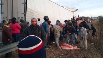 Si bien los agentes de la Policía Vial y de la Gendarmería llegaron rápidamente y dispusieron un operativo de tránsito para evitar accidentes, permitieron que las personas levantaran la mercadería y se la llevaran a sus casas.