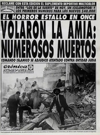 "El horror estalló en Once. Volaron la AMIA: numeroso muertos. Comando islámico se adjudicó atentado contra entidad judía"