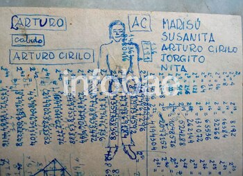 Las cartas se interrumpen. El tedio y la desesperación lo impulsan a llenar hojas –éstas, sin membrete– con nombres y palabras grandes en letra de imprenta: MARISU, VIDA MIA: HIJOS QUERIDOS / SUSANITA / ARTURO CIRILO.
