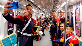 Para ello, decidieron dejar a sus corceles en el regimiento del barrio porteño de Palermo y tomarse el subte D para bajarse en la estación Catedral.