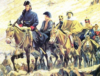 Por un rato, el hombre abandonó su tradicional uniforme blanco con el que se para frente a sus alumnos en el aula y se disfrazó de San Martín para recrear una arenga que le hizo el Libertador a sus soldados antes de la Batalla de Chacabuco.