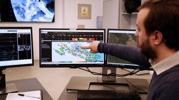 ¿Cómo funciona el sistema? Primero, una antena de recepción satelital permite recibir la información captada por el satélite meteorológico estadounidense GOES-R, lanzado en 2016, y envía la información al Centro Único de Coordinación y Control, que funciona en Chacarita, transmite alertas a Defensa Civil, SAME, Bomberos y Policía de la Ciudad para articular las medidas necesarias: alertas de tránsito, envío de agentes de prevención e intensificación de trabajos de limpieza de sumideros, entre otras acciones.