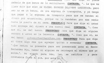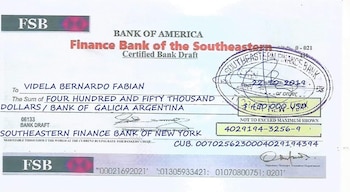 Durante el tiempo que mantuvieron el contacto, el estafador le envió documentos bancarios que certificaban que el dinero provenía del banco Southeastern Finance Bank de Nueva York. Uno de ellos -dado a conocer por el propio damnificado- era el certificado de un giro bancario a su nombre con el monto que le habían heredado.