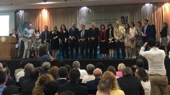 Durante la ceremonia, que tuvo lugar en el salón de actos de la Facultad de Ciencias Económicas, el rector de la UBA, Alberto Barbieri, destacó el esfuerzo de docentes e investigadores que, a pesar de la acotada inversión en educación y ciencia, “no han mermado su trascendente presencia en la región como referentes”.