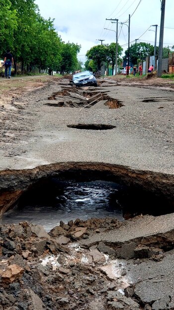 El pavimento que cedió a metros de la Circunvalación se encuentra en una calle muy transitada ya que es paralela a la avenida principal de ingreso a la ciudad de Córdoba.
