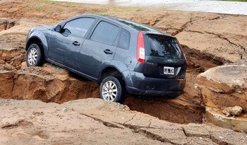 En medio del feroz temporal que azota distintos sectores de la provincia de Córdoba desde este domingo, pero fundamentalmente la Capital y Sierras Chicas, una familia salvó su vida de milagro cuando el auto en el que viajaban fue “tragado” por el asfalto que cedió por las intensas lluvias.