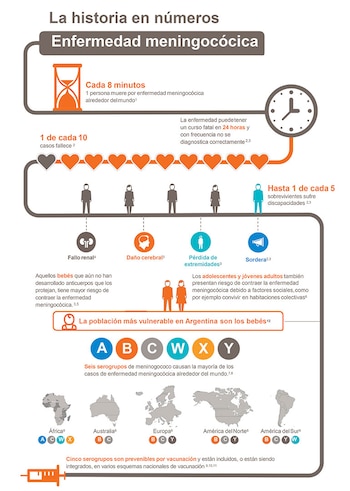 La enfermedad invasiva por meningococo en la Argentina es de baja incidencia (menos de 200 casos anuales) y se da en forma endémica, con brotes esporádicos. Los casos se presentan habitualmente en menores de dos años de edad, especialmente en los menores de un año.