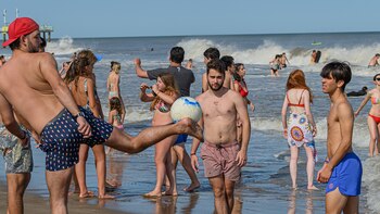 A simple vista son cuatro jóvenes que no superan los 20 años jugando con una pelota en la orilla. Están a 35 metros del muelle y pareciera ser que el objetivo es que la redonda no toque la arena. Sin embargo, al pasar cerca de ellos se oye la premisa del juego: el receptor debe completar la cantidad de toques que aquel que le entrega la pelota disponga y evitar que, efectivamente, bese la orilla.