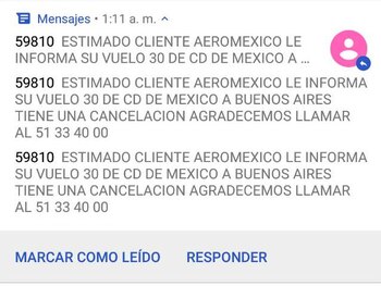 Sin destino, llamó al call de la compañía. “Me tuvieron cuatro horas en espera, me sugieren que viajara a Cancún porque de ahí sale el último vuelo de Aerolíneas Argentinas de esta semana, pero no tengo cómo pagarlo y ninguna de las empresas que me suspendieron el vuelo me hacen reembolso”.