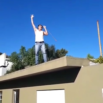 Ya se subió a la terraza tres veces, y sus vecinos lo aclaman, es toda una sensación en la ciudad de la provincia de Buenos Aires. " Cada vez se suma más gente. Es lindo porque siempre hay uno que arenga, otro aplaude... hasta coristas".