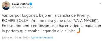 Por estos días, Lucas solo tiene palabras de admiración hacia su mujer. Está orgulloso de la templanza y la fortaleza que demostró en esa situación límite, donde lo que estaba en juego era la vida de su hija. “Ver como sacan fuerza de donde no tienen, tranquilidad y frialdad para manejar la situación es algo que nunca pensé que iba a vivir. Una locura, LO MÁS HERMOSO DE LA VIDA”, destacó.
