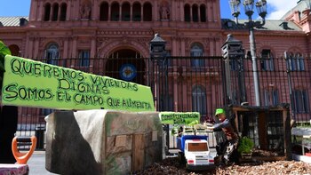Productores rurales y campesinos protagonizaron hoy una curiosa protesta en el céntrica Plaza de Mayo para reclamar una ley de acceso a la tierra. En una postal poco habitual, la vereda frente a la Casa Rosada se vio repleta este mediodía de productos agroecológicos y animales de granja, como verduras, frutas y cabritos.