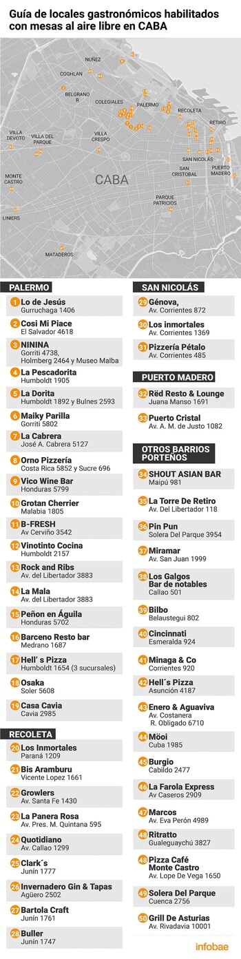 Infobae hizo un relevamiento de los locales que abrieron con sus mesas al aire libre, ansiosos por volver a recibir a sus clientes.