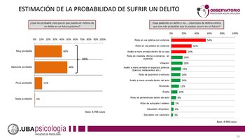 El punto más llamativo del relevamiento indicó que ante la consulta sobre si los ciudadanos creen que podrán ser víctimas de un delito en un futuro próximo, el 88% de los encuestados determinó que sería una opción “bastante probable” (48%) y “muy probable” (40%).