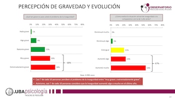 Esos aspectos preocupantes formaron parte del llamado Monitor de Seguridad Nº 2, confeccionado por el Observatorio de Psicología Social Aplicada (OPSA) de la facultad de Psicología de la UBA entre el 3 y el 10 de diciembre.
