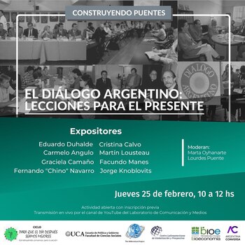 “El Diálogo Argentino: lecciones para el presente” será el primer encuentro del ciclo “Para que el día después seamos mejores”, que organiza la Universidad Católica Argentina, y se realizará el jueves 25 de febrero, de 10:00 a 12:00.