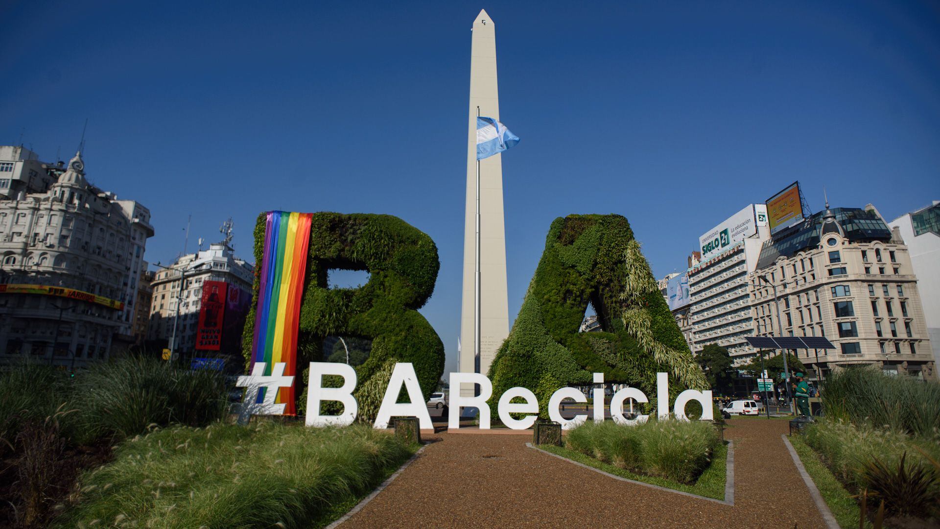 Desde la cuenta de Twitter de Jóvenes NOS, la rama juvenil del partido político presidido por Juan José Gómez Centurión, se subió un video a la 1:14 de la madrugada en el que se contempla a dos personas, con gorros y capuchas y barbijos en sus rostros, frente a una de las banderas del Orgullo instaladas junto a la inmensa sigla “BA”, pegada al Obelisco.