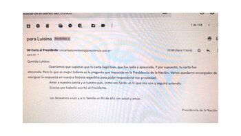 Desde un correo oficial de Presidencia, perteneciente al espacio “Mi carta al Presidente”, llegó el contacto tan esperado por la menor: