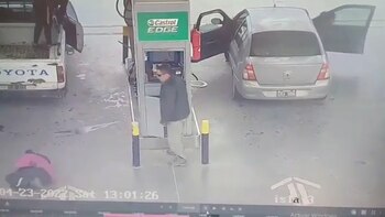 A partir de las imágenes grabadas por una cámara de seguridad del lugar, se observa que el violento episodio ocurrió apenas pasada las 13 en una estación de servicio ubicada en Pasaje Gutierrez y Avenida Herman, en la cual el conductor de un Renault Logan color gris se encontraba junto a su familia aguardando al lado de uno de los surtidores para ser atendido.