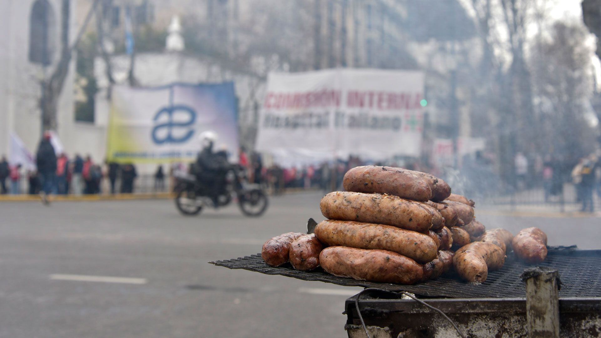 Según pudo precisar Infobae, en el punto de encuentro para el acto final de la CGT frente al Congreso de la Nación, el precio de un choripan es de $400, mientras que una bondiola cuesta $700 —$800 con aderezos—