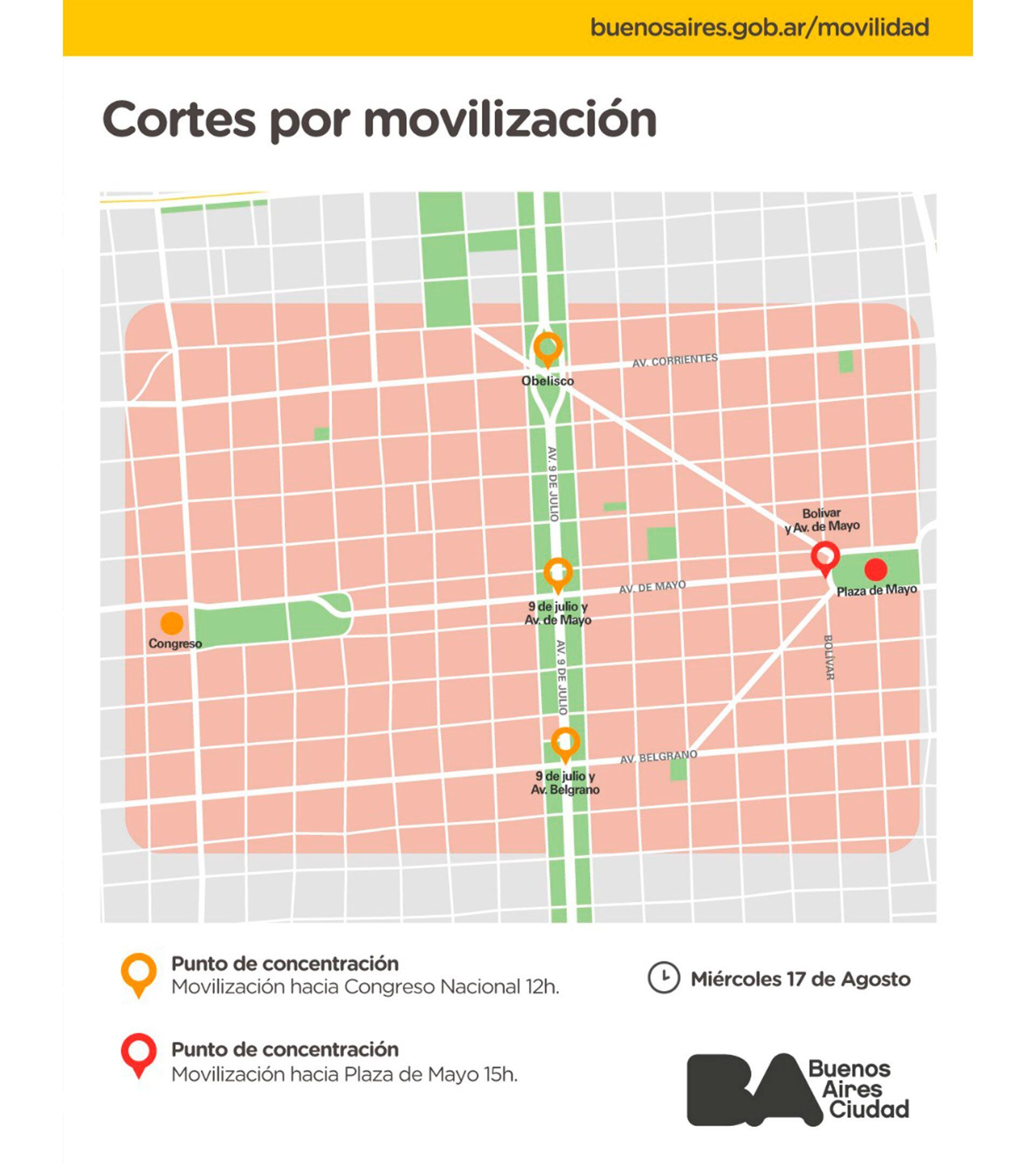 Ante lo masivo de la doble protesta, las autoridades recomendaron a los conductores que tienen como destino el centro porteño optar hacerlo con servicio de transporte público, especialmente a través de la red de subterráneos, para no sufrir demoras e inconvenientes.