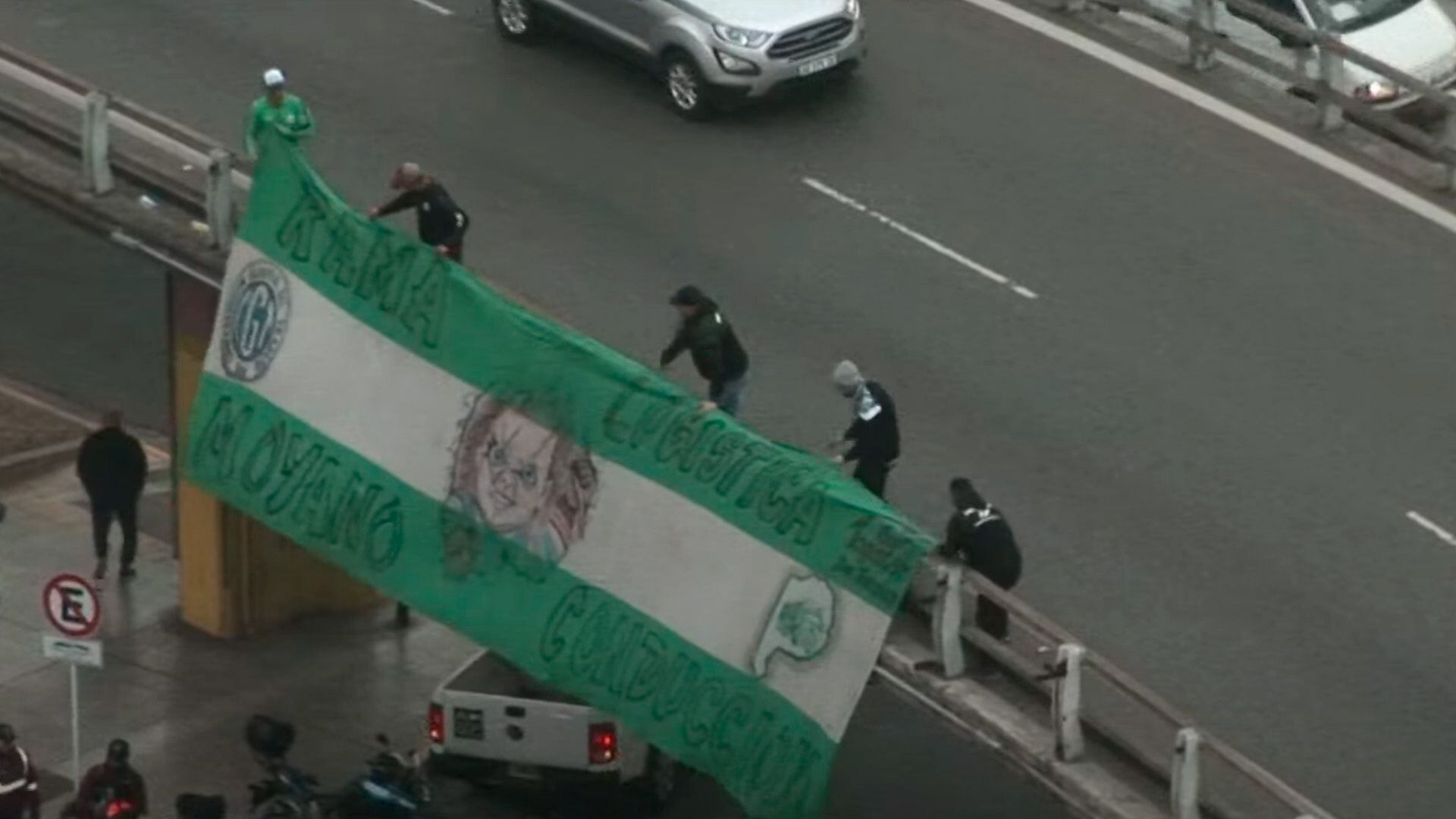 En la previa de la marcha, los manifestantes colgaron una bandera con los colores “verde y blanco” representativos del gremio, sobre el guardarrail de la Autopista 25 de Mayo. La Policía se hizo presente y comenzó una discusión que fue subiendo de tono. Se llegaron a ver algunos empujones y forcejeos entre los sindicalistas y los efectivos, quienes finalmente sacaron y se quedaron con la bandera.