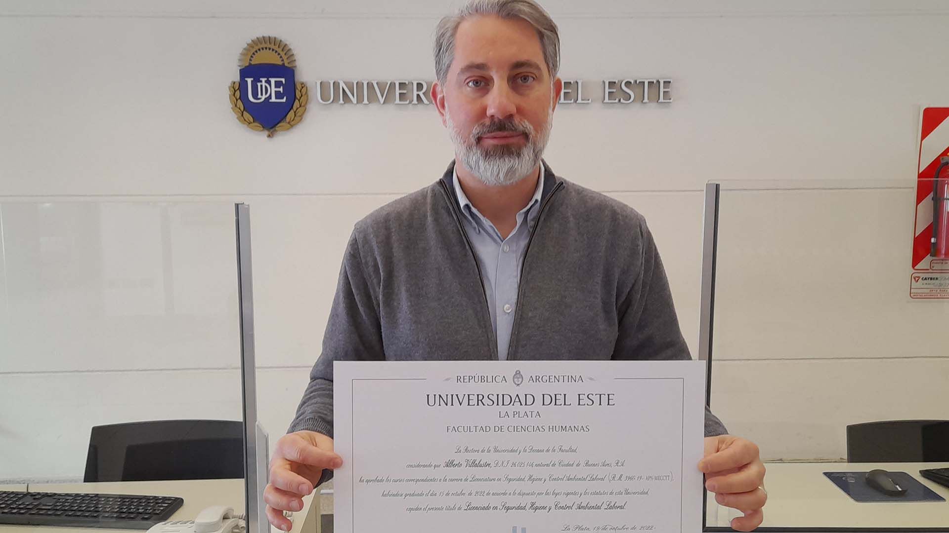 Curioso e inquieto por naturaleza, Alberto empezó a preguntarlo todo mientras trabajaba junto a los aviones en el aeropuerto y terminó embarcándose en la carrera de Seguridad e Higiene, una tecnicatura de tres años, que completó. Y más.