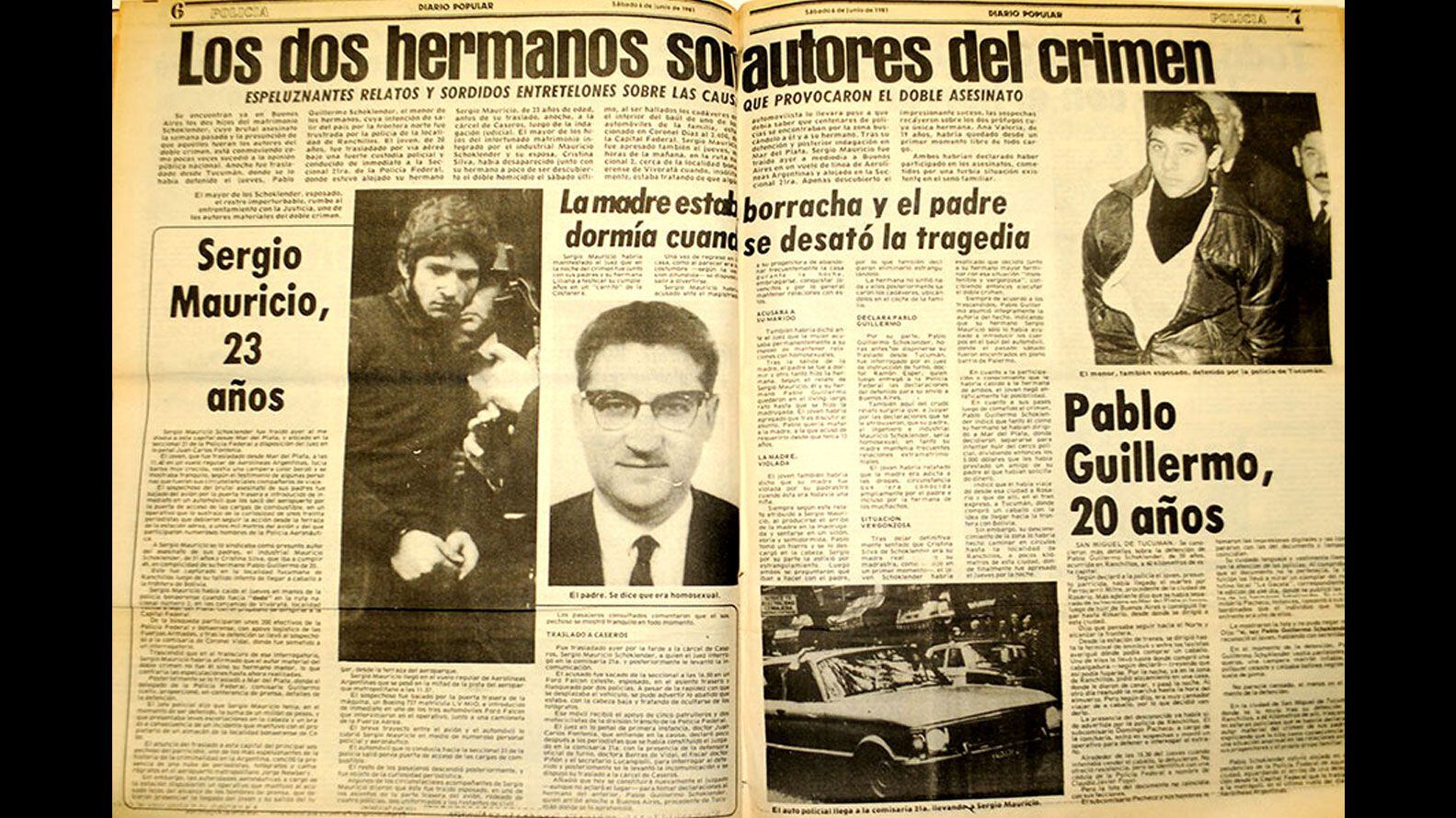 ‘Envolvieron sus cabezas con toallas y les pusieron bolsas de polietileno llevándolos luego al baúl de uno de los coches del padre, donde los cubrieron con una sábana. Fue Sergio Schoklender quien condujo el vehículo hasta la avenida Coronel Díaz 2459, donde lo dejó; descubriéndose los atroces crímenes merced al charco de sangre que se había formado debajo del rodado. Los acontecimientos sucedieron aproximadamente entre las 3 y las 6,45 horas del 30 de mayo de 1981″, figura en el expediente que en su momento impulsó el juez Juan Carlos Fontenla’.”