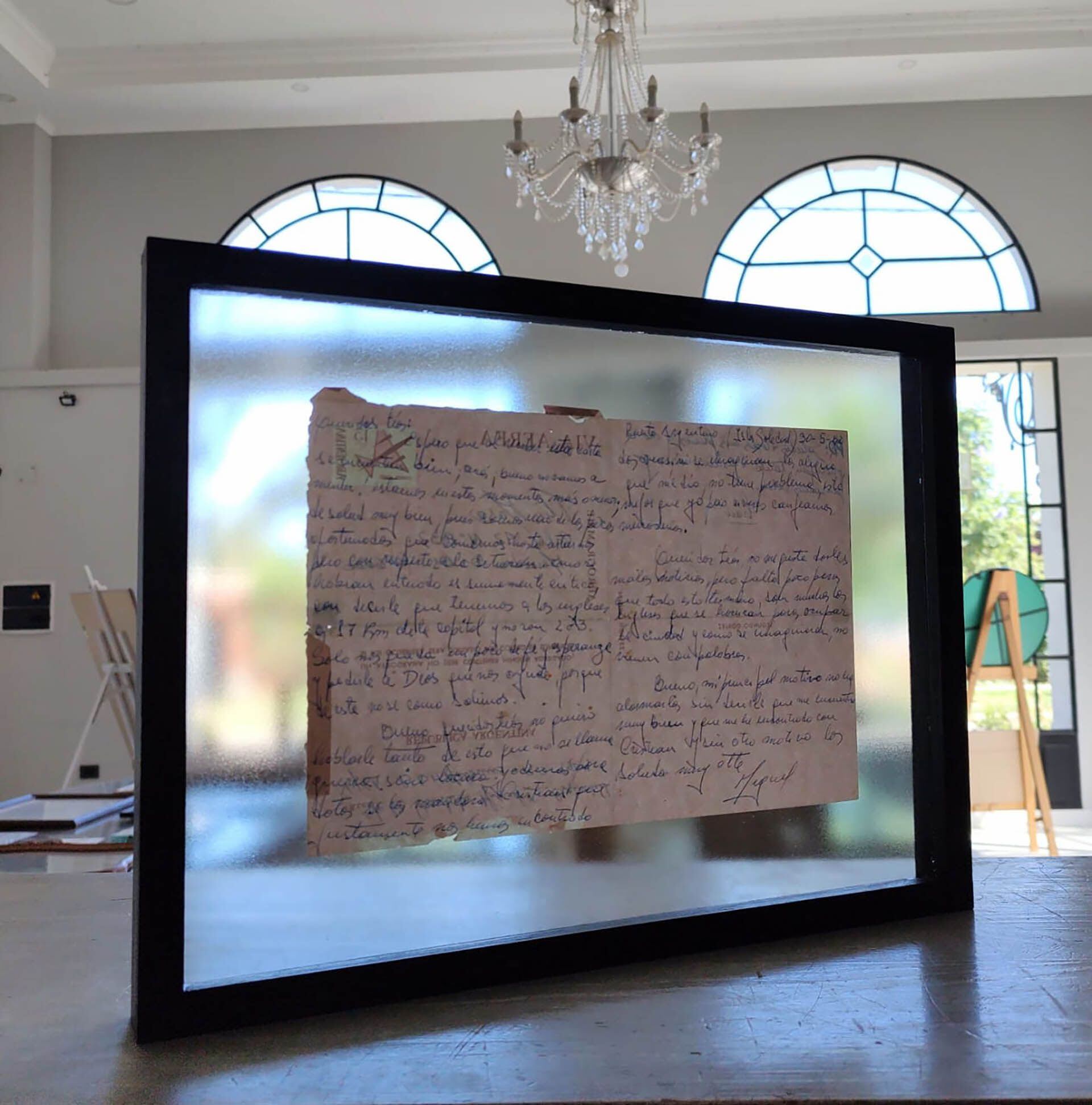 -Tiempo atrás recuperé una carta que le envié a mis tíos, cuyo hijo, mi primo, también estaba en Malvinas. Fue gracias a un historiador de Santa Fe. Pensé que si aquella carta (que se subastó en el Reino Unido y fue adquirida por la Embajada Argentina) volvió finalmente a su remitente, por qué no podía suceder lo mismo con la bufanda. La carta está junto a la bufanda en el museo de Baradero. Mis tíos murieron, incluso mi primo también partió muy joven. En esas líneas, escritas el 30 de mayo de 1982, les contaba que estábamos bien. También algunas mentiras piadosas. Pero nunca llegó a destino.