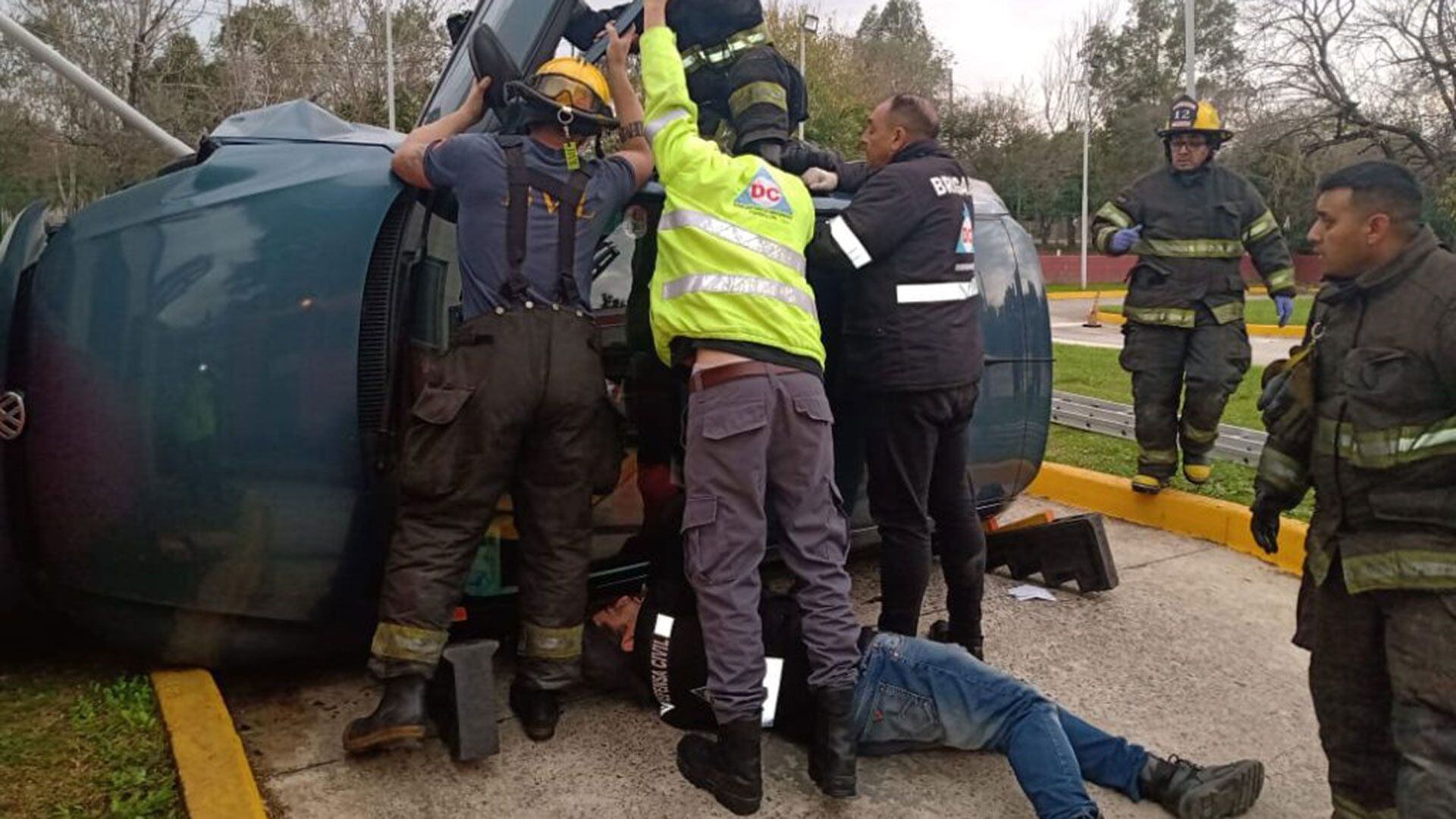“La señora se puso nerviosa al efectuar una maniobra y, por ese motivo, impactó contra un cantero y una luminaria. Eso produjo que girara con su vehículo y quedase apresada dentro del mismo”, explicó el director General de Defensa Civil, Rodrigo Patiño.