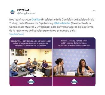 En la semana previa al día del padre integrantes de la campaña Paternar se reunieron con las dos articuladoras fundamentales del proyecto, la diputada Vanesa Siley (Frente de Todos), presidenta de la comisión de Legislación del Trabajo y con la diputada Mónica Macha (Frente de Todos), presidenta de la comisión de Mujeres y Diversidad, en el Congreso de la Nación.