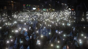 Con banderas de Israel, una multitud participa del acto convocado por la comunidad judía en el país. Ocurre en la tercera jornada posterior a los ataques del grupo terrorista Hamas en distintos puntos del Estado Israelí.