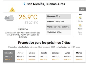 Este fenómeno se mantendrá en San Nicolás al menos desde la madrugada del jueves hasta la noche del mismo día. Se prevé que las lluvias aisladas comiencen el viernes y que, finalmente, el sábado sea una jornada mayormente nublada.